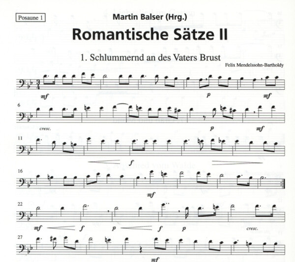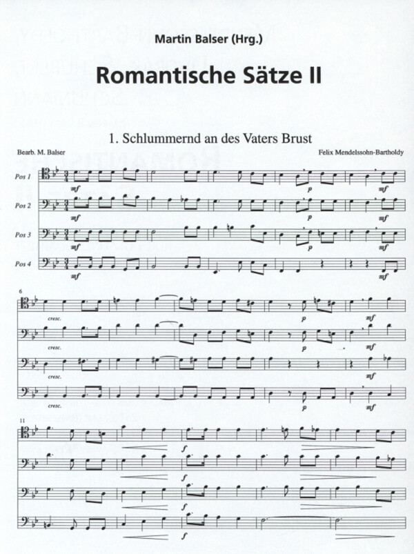 (mit Mendelss ohn: Schlummernd an des Vaters Brust - Dvorak: Hab mein süßes Lieb verloren - Schumann: Der träumende See - Dvorak: Liebeslied im Garten - Mendelssohn: Abschied vom Walde - Mendelssohn: Wohl denk ich allenthalben - Schubert: Grab und Mond, 1.Pos im Baß- oder Tenorschlüssel, 2.-4.Pos im Baßschlüssel)
