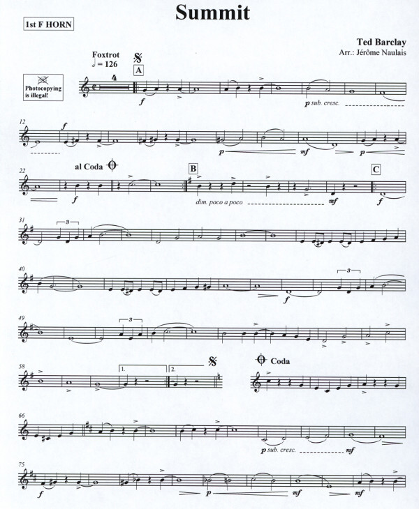 für 4 Hörner in F & Klavier (Gitarre, Baßgitarre & Drums optional)