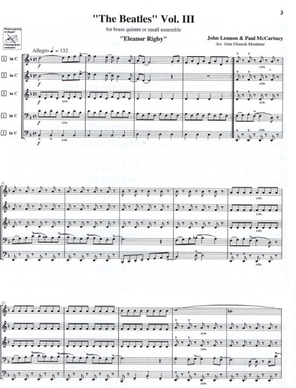 Eleanor Rigby Penny Lane When I'm Sixty-Four für 2 Trompeten Horn (Trompete) Posaune (Tenorhorn) + Tuba in C/B/Es