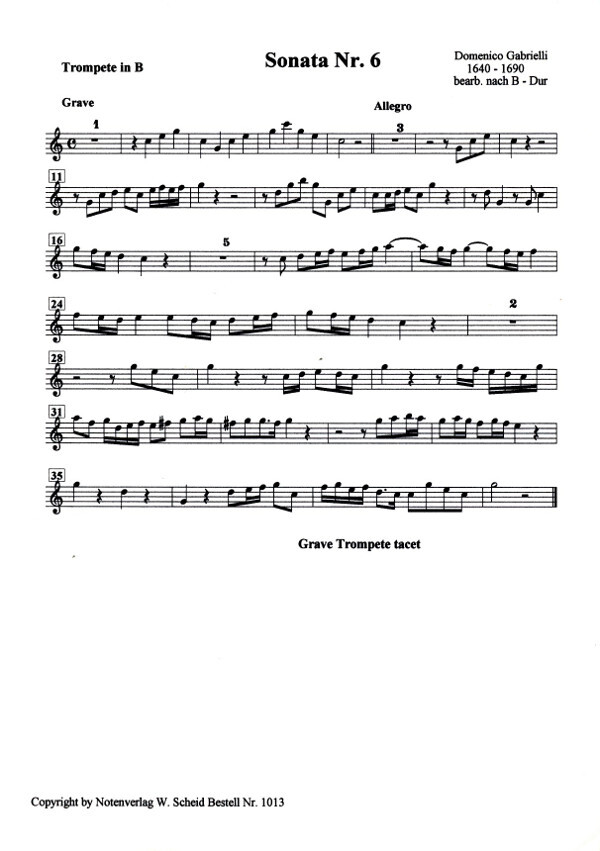 6 Sonaten D-Dur - Nr. 5 (transponiet nach B-Dur)