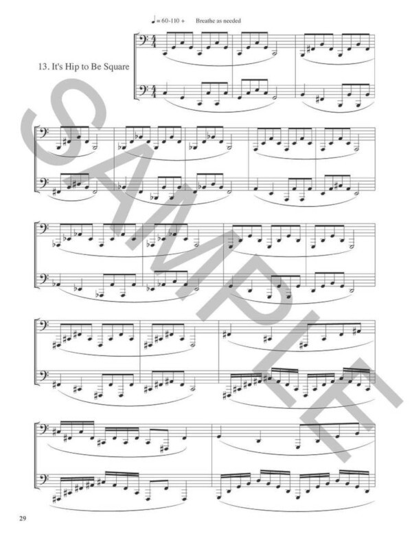 The Wiffle Waffle, The Hip Lip Flip Trip, Melodic Minor Mayhem, and Arban Freaks Out are just some of the funbut make no mistake, also challenging!duets included in Dueling Fundamentals for Tubas. This book consists of five chapters: Long Tones, Stabilizers, Flexibility, Range Extenders, and Scales and Arpeggios. In each duet, both lines are challengingthere is no student line and no teacher line. Therefore this book works well for lessons or as an excellent tool for two friends or classmates looking to challenge themselves and each other.