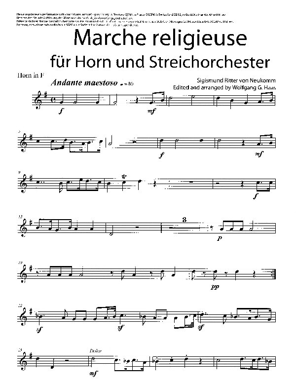 für Horn in F/B (Corno da Caccia), 2 Oboen ad lib. + Streicher