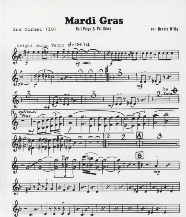 Latin-American Samba für 4 Kornette Horn in Es Tenorposaune in B im Violinschlüssel Baßposaune Euphonium Es-Bass + Percussion