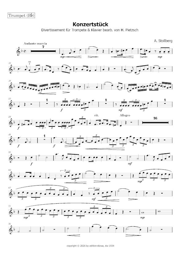 Seine Bearbeitung vom Divertissement für Trompete von A. Stollberg ist sehr anspruchsvoll.