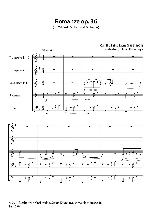 In dieser Bearbeitung übernehmen Trompeten, Posaune und Tuba den Orchesterpart.