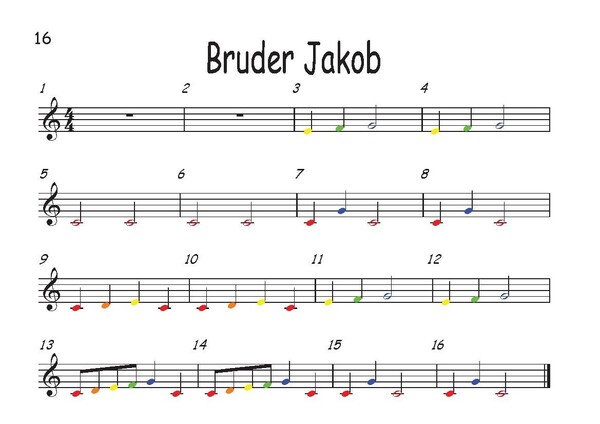 Jedem klingendem Ton wird eine Farbe zugeordnet. Dies bedeutet, dass bei Tönen die verschieden notiert werden, aber gleich klingen (siehe Beispiel), die selbe Farbe verwendet wird. So haben auch Kinder, für die es schwierig ist die Position der Töne in der Notenzeile genau zu bestimmen, die Möglichkeit sich aufgrund der Farben zu orientieren.