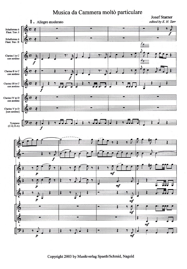 für 2 Chalumeaux (Flöten) , 5 Trompeten (gedämpft) + Pauken (C-G, D-A)