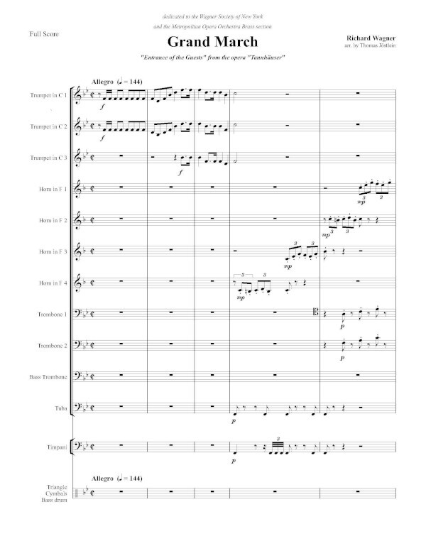 Mr. Jöstlein's arrangement is dedicated to the Wagner Society of New York and the Metropolitan Opera Orchestra Brass Section.