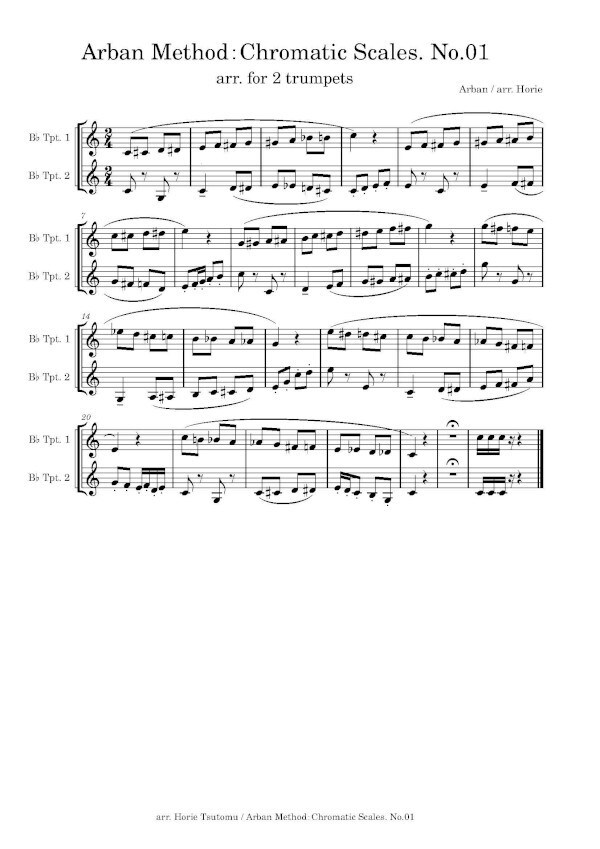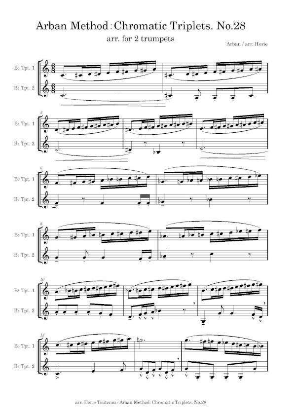 Horie Tsutomu hat in 10 Bänden die Übungen der bekannten Arban Schule für 2 Trompeten arrangiert, eine sehr gute Idee.
