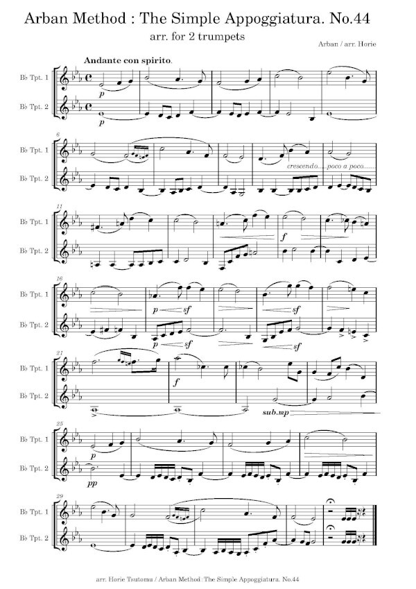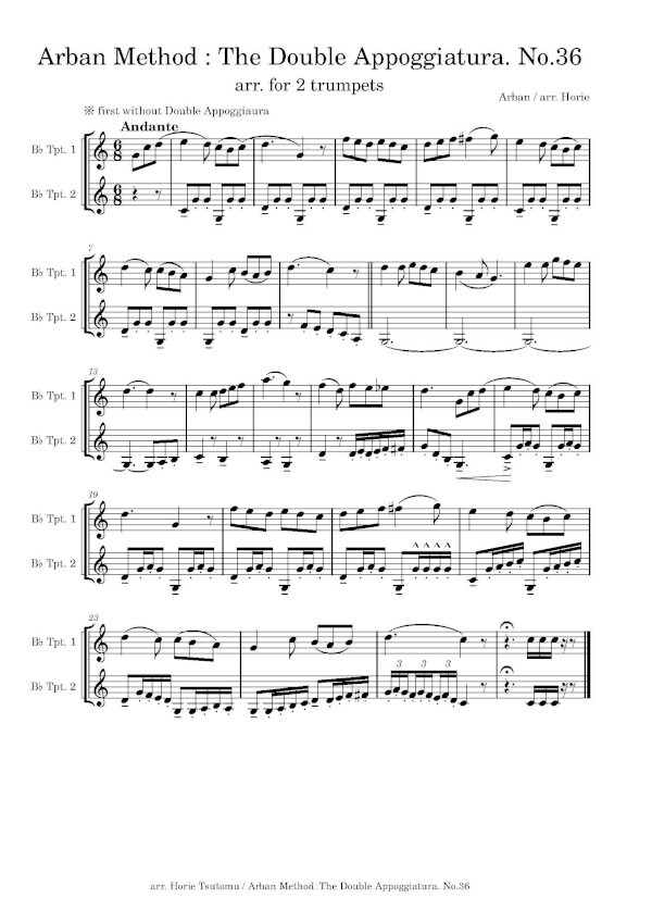 Horie Tsutomu hat in 10 Bänden die Übungen der bekannten Arban Schule für 2 Trompeten arrangiert, eine sehr gute Idee.