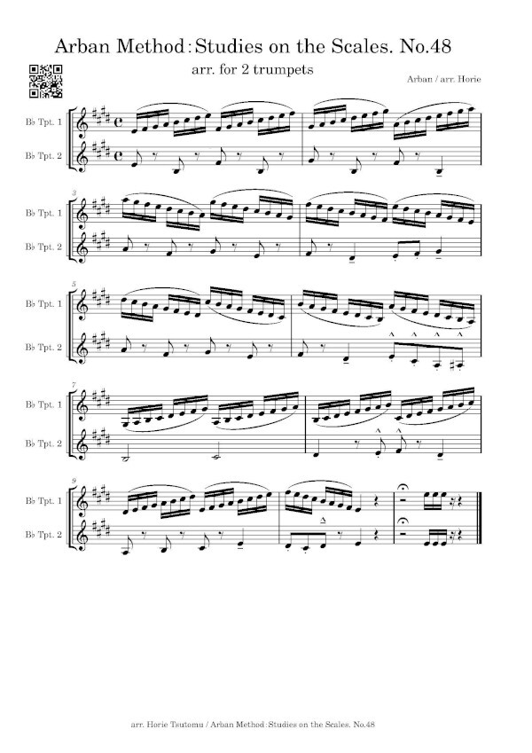 Horie Tsutomu hat in 10 Bänden die Übungen der bekannten Arban Schule für 2 Trompeten arrangiert, eine sehr gute Idee.