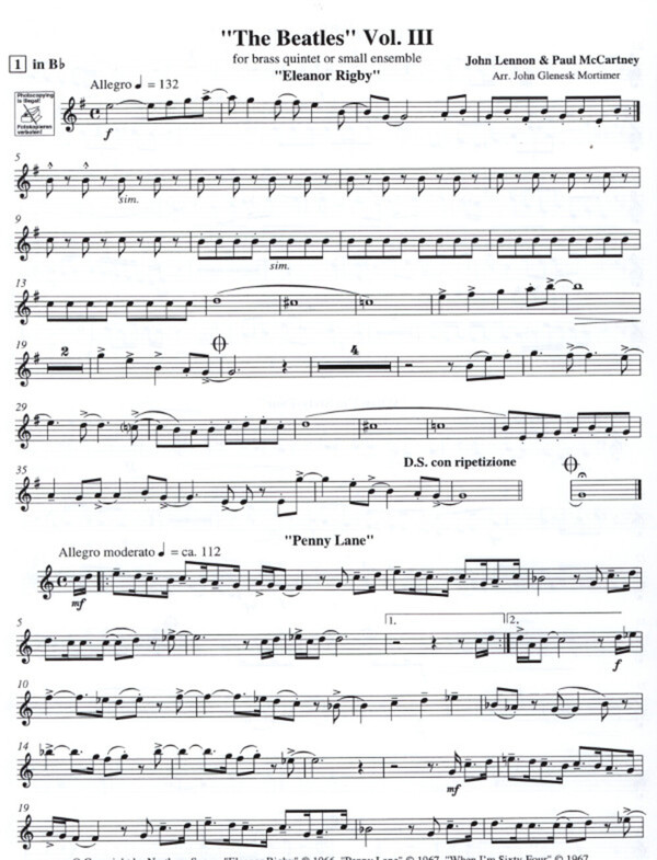 Eleanor Rigby Penny Lane When I'm Sixty-Four für 2 Trompeten Horn (Trompete) Posaune (Tenorhorn) + Tuba in C/B/Es