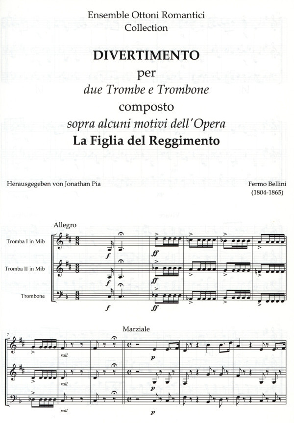 Ensemble Ottoni Romantici Collection Jonathan Pia Divertimento per due trombe e trombone sopra alcuni motivi dell'opera La Figlia del Regimento