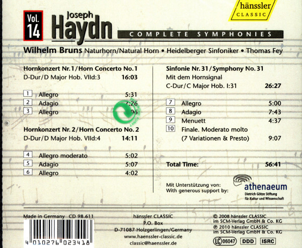 Haydn: Sinfonie Nr.31 "Mit dem Hornsignal" C-Dur Hob. I:31