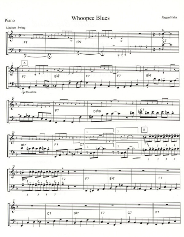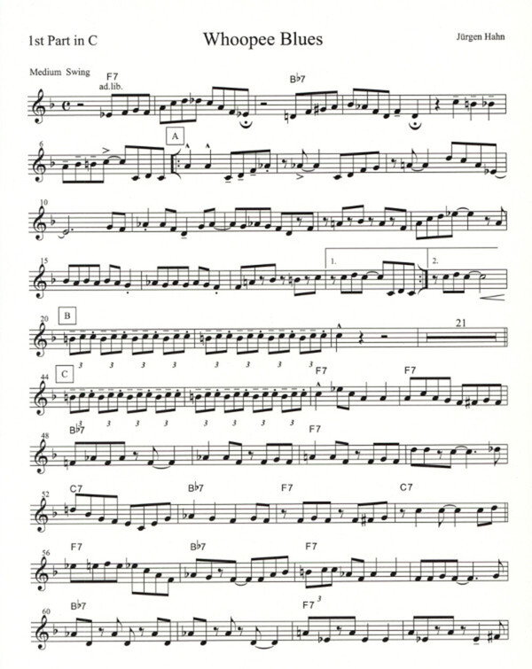 Trompete (Klarinette/Flöte) Trompete (Horn in Es/Klarinette/Saxophon) Posaune (Tenorhorn/Saxophon) + Bass, Schlagzeug, Klavier ad lib.