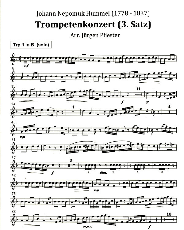 Reihe: Rennquintett plays Classic 1. Trompete (solo) in Es/ Bb 2. Trompete in Bb 3. Horn in F 4. Posaune 5. Tuba