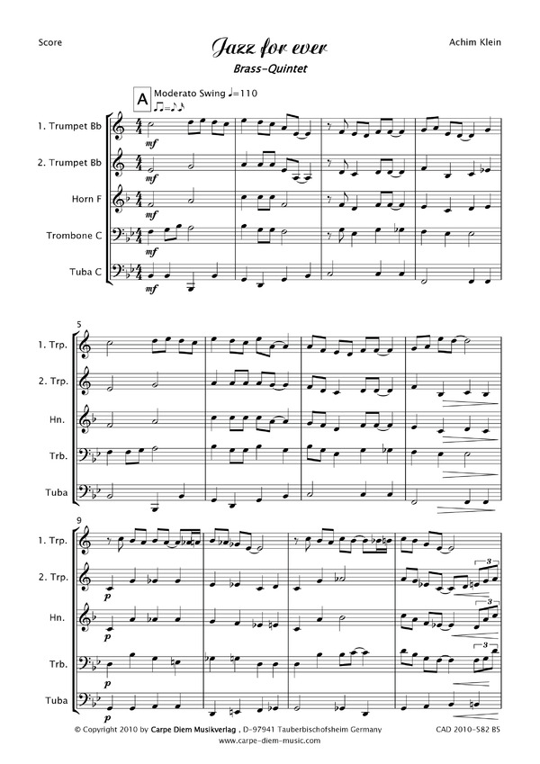 2 Trompeten (B), Horn (F), Posaune, Tuba