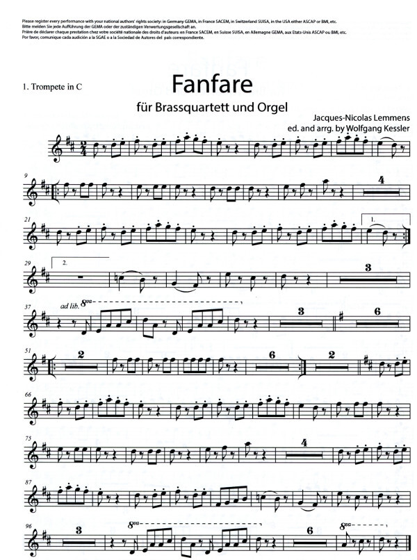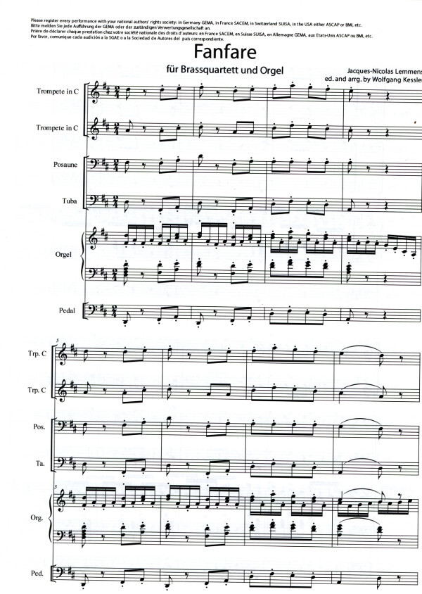 für 2 Trompeten in B/C, Posaune (Horn in F), Posaune (Tuba) + Orgel