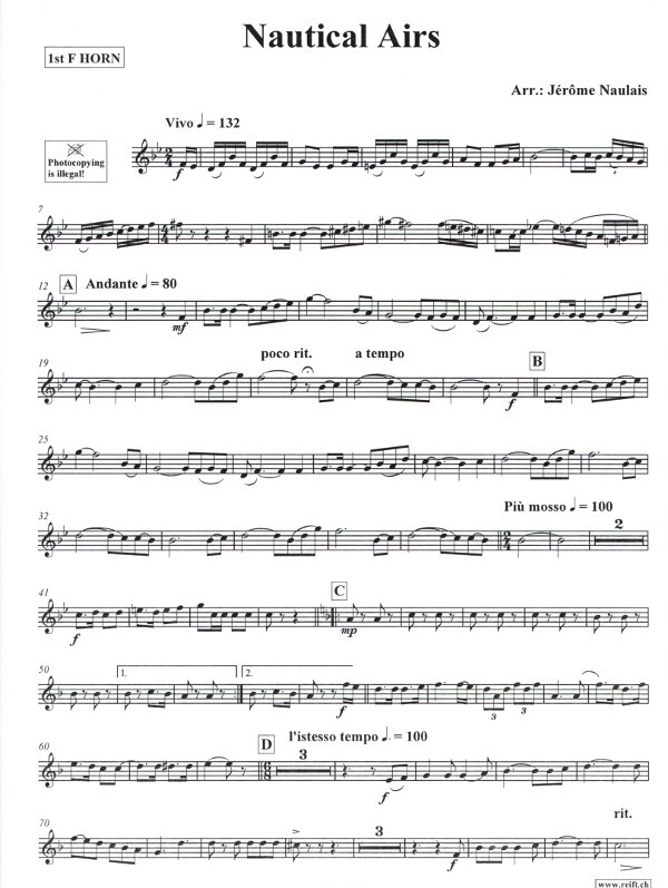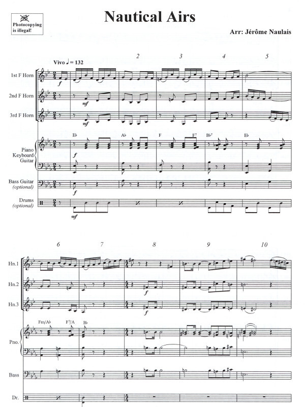 für 3 Hörner in F und Klavier (Gitarre, Baßgitarre & Drums optional)