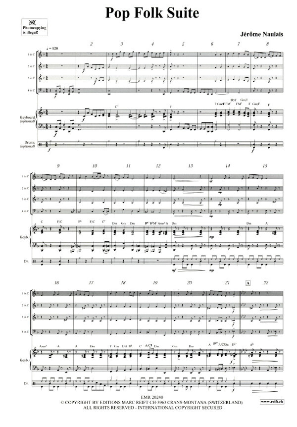 3. Stimme: B + C+ F + Es (Violinschlüssel) und C (Baßschlüssel) 4. Stimme: C (Baßschlüssel) und B + Es (Violinschlüssel)