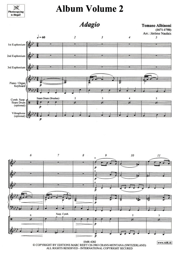 I nhalt: Albinoni: Adagio - Gershwin: I Got Rhythm - Beethoven: Die Ehre Gotte s aus der Natur - Chopin: Tristesse - Mouret: Fanfare Rondeau 3 Baritone in B/C (Baßschlüssel) und Klavier (Keyboard / Organ), Drums + Percussions optional