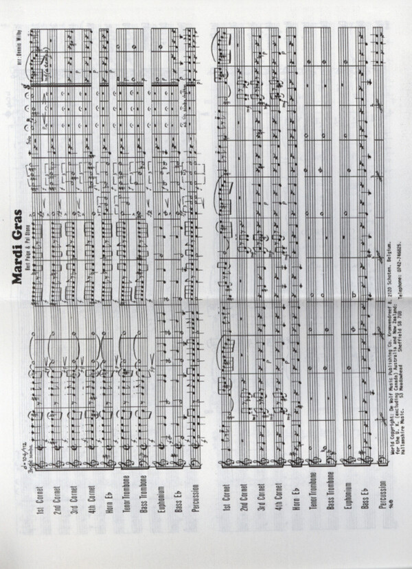 Latin-American Samba für 4 Kornette Horn in Es Tenorposaune in B im Violinschlüssel Baßposaune Euphonium Es-Bass + Percussion
