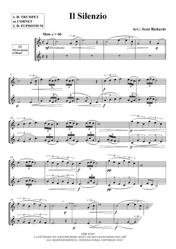 für Trompete in B (Cornet) & Euphonium in B & Klavier (Organ) optional