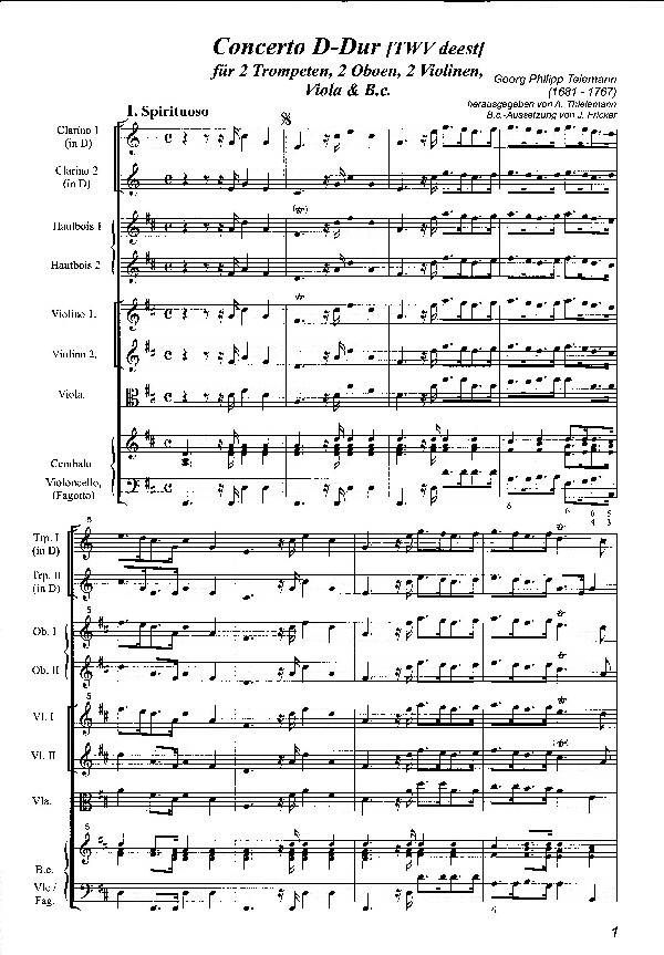 2 Trompeten in D, 2 Oboen, 2 Violinen, Viola & B.c.