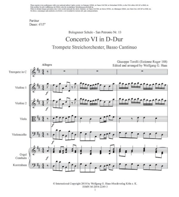 Die editorische Sorgfalt und geschmackvolle Gestaltung von Etienne Roger wurden in ganz Europa geschätzt. Komponisten wie Torelli, Vivaldi und Albinoni, schätzten die überlegene Qualität von Rogers Nachdrucken und boten ihre neuen Werke ab ca. 1710 gleich Roger zum Druck an. Geschäftsbeziehungen zu Verlegern in Rotterdam, Brüssel, Lüttich, Paris, Köln, Leipzig, Halle, Berlin, Hamburg und London sorgten für eine weite Verbreitung, so dass die Verbindung mit Roger für die italienischen Komponisten auch publizistisch intensiver war, als die Verbreitung über einheimische Verleger. Wie genau Torelli an Roger gekommen ist, ist nicht bekannt. Dass dieses Werk aber zu den interessantesten Werken mit Trompete gehört, ist gewiss.